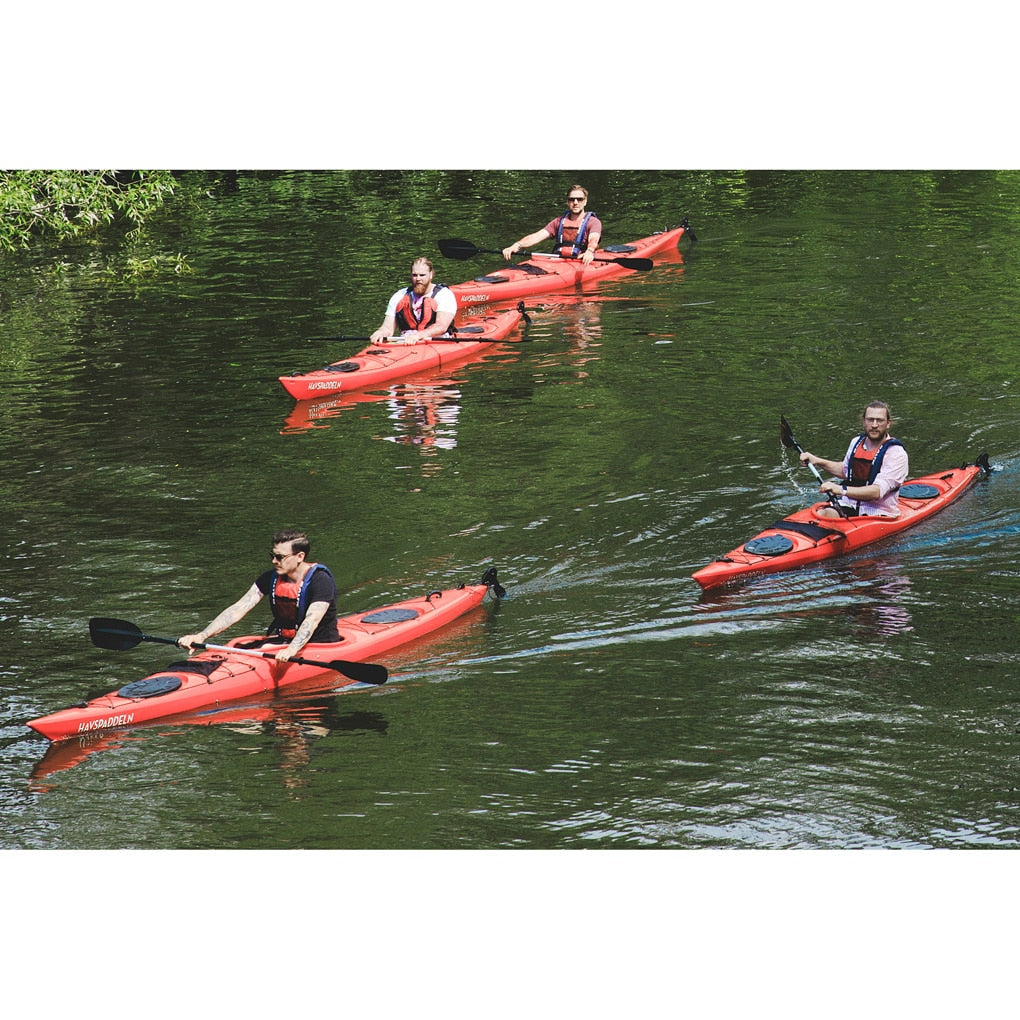 Viggen is a popular model; this one has served as a rental kayak for a maximum of one season. It is known for its stability, low weight and compact design, making it easy to handle both on land and in the water. Despite its shorter length, it holds a surprisingly large amount of gear, so you can bring most of what you need for both short outings and longer trips.