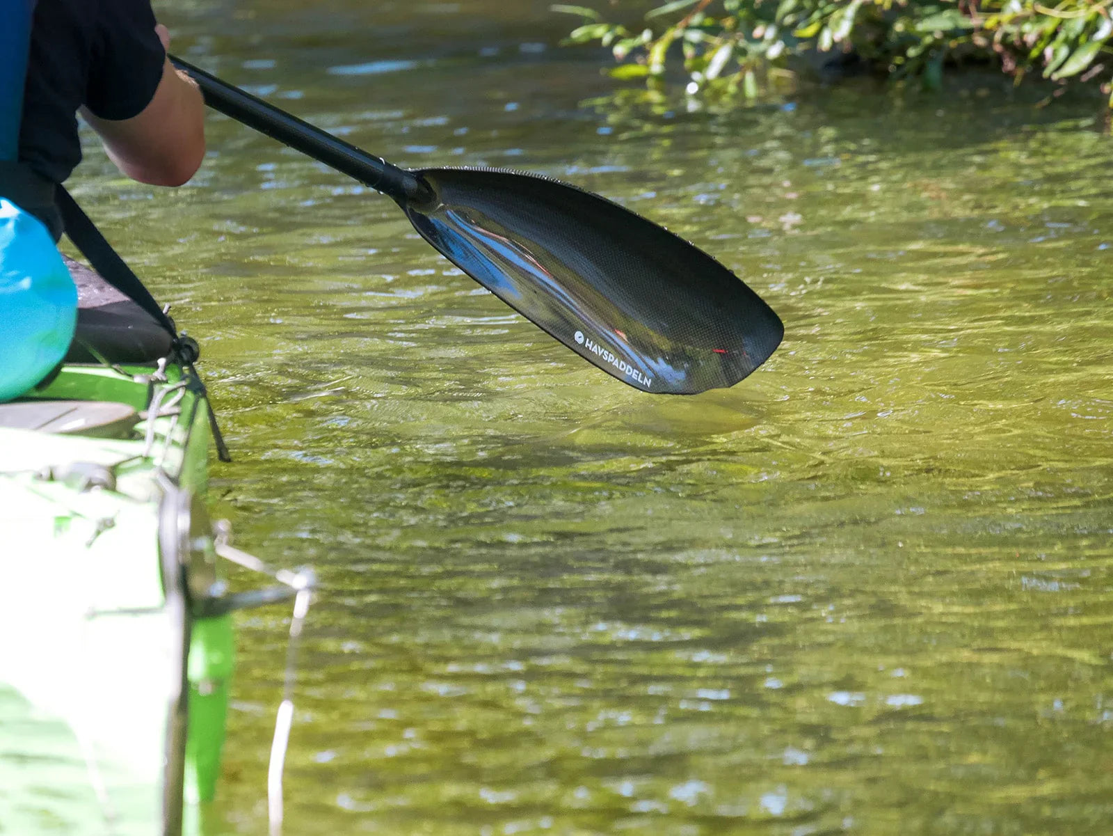Lightweight and stiff carbon fibre kayak paddle with wing-shaped blades, designed for efficient and energy-saving paddling. The wing blade design provides better grip in the water and higher propulsion, making the paddle particularly suitable for recreational paddling and longer trips where technique and pace are important.